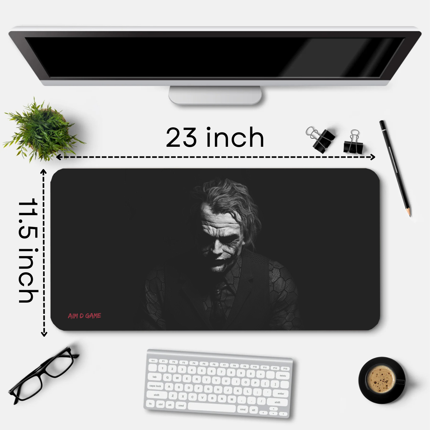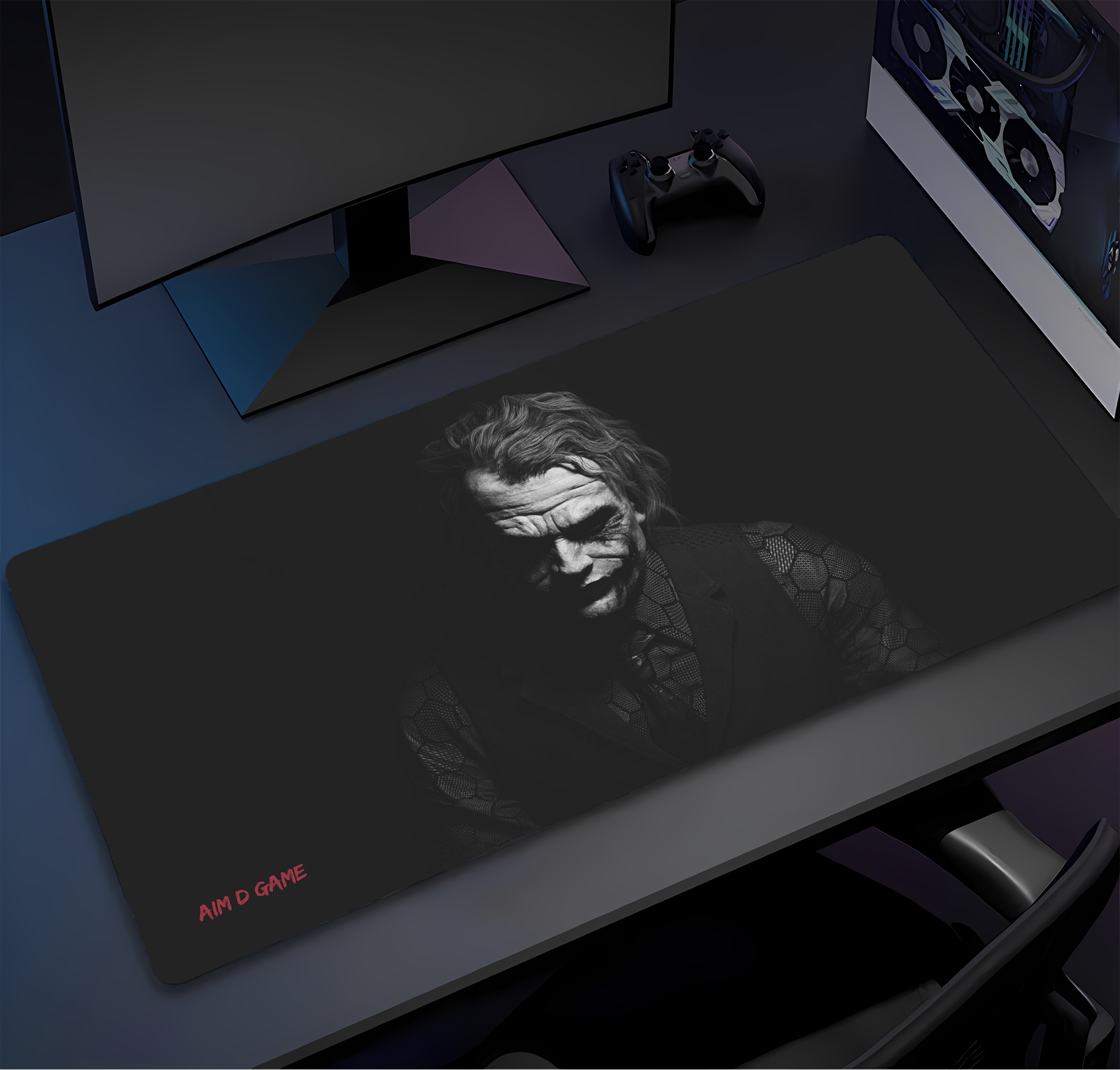 Unleash chaos and creativity on your desk with the Aim D Game Joker Dark Edition Mouse Pad. Designed for gamers, creators, and fans of dark, minimalist art, this XXL extended mouse pad (23 × 11.5 inches) brings a powerful, cinematic presence to your gaming or work setup.