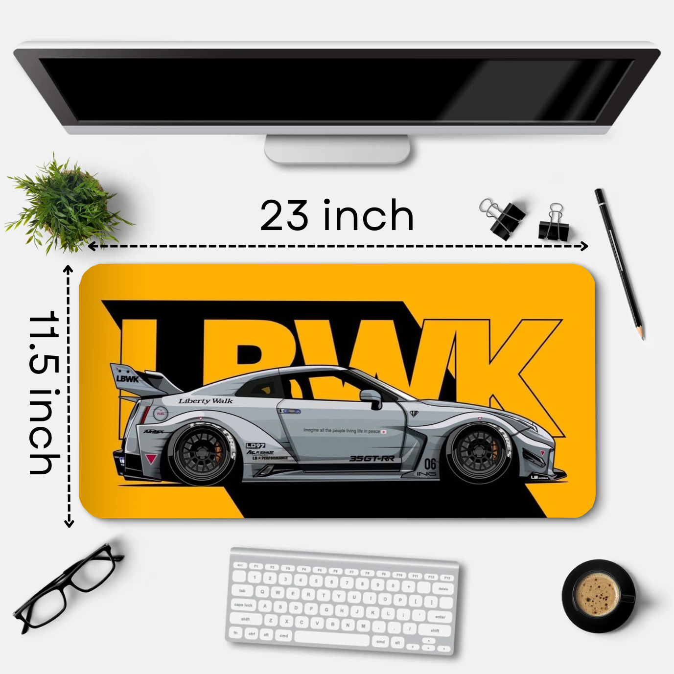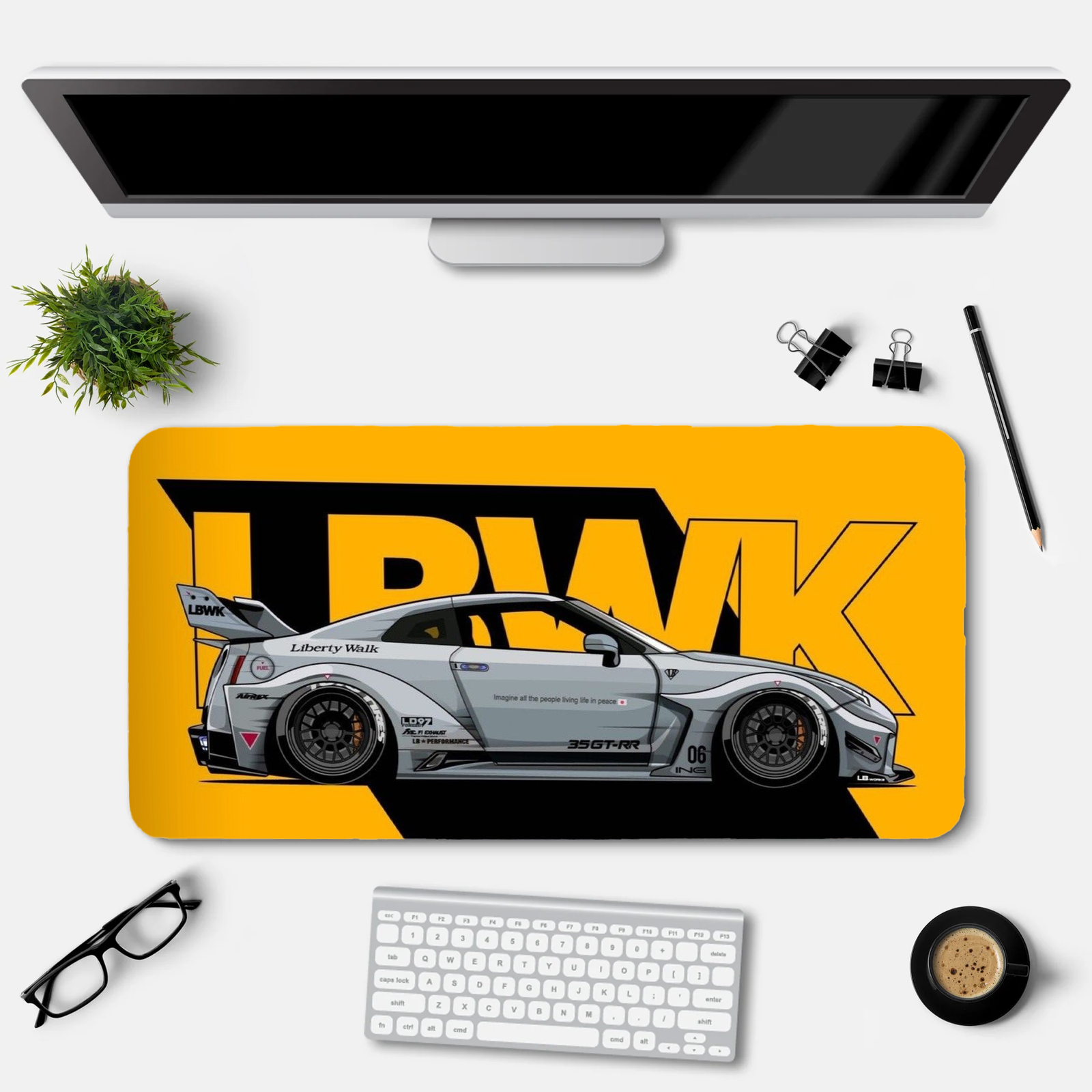 Experience the perfect mix of speed, style, and performance with the Liberty Walk GTR Gaming Mouse Pad. Designed for car enthusiasts, gamers, and professionals, this large 23×11.5 inch desk mat brings the raw power of the Nissan GTR LBWK edition right to your workspace.