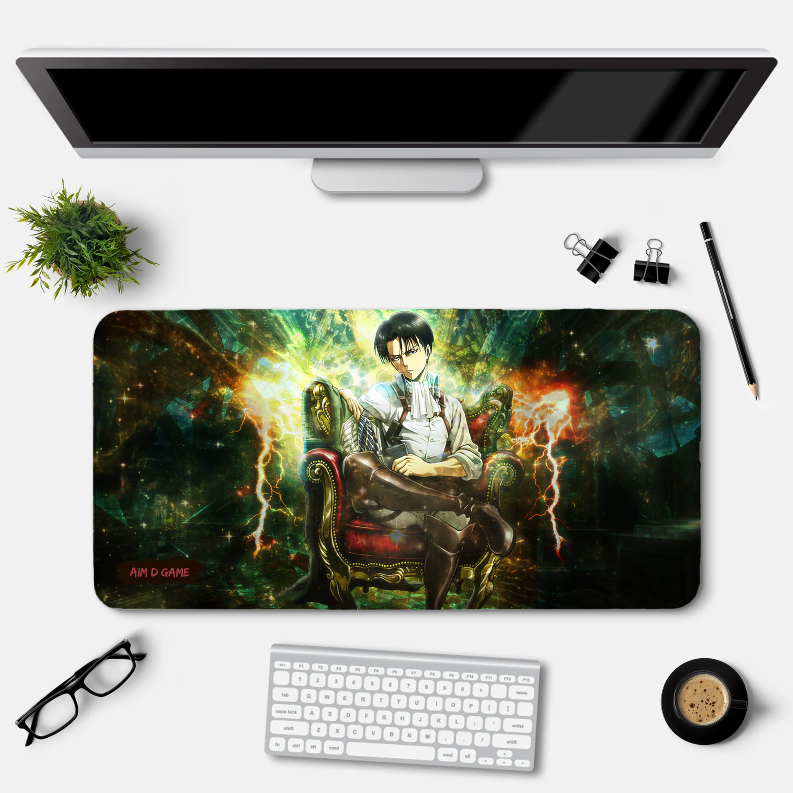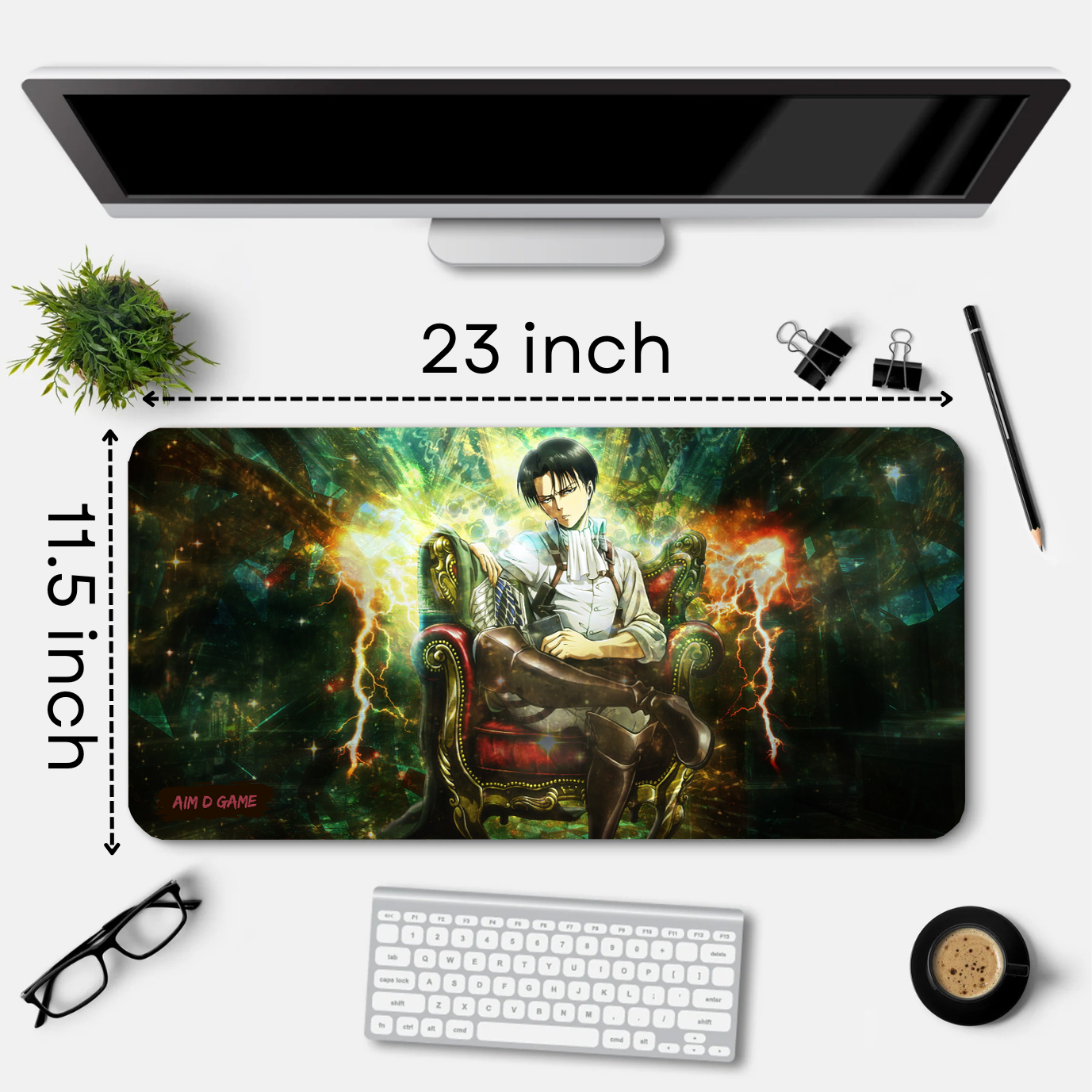 Bring power, precision, and personality to your desk with the Aim D Game Levi Ackerman Anime Mouse Pad — inspired by the legendary soldier from Attack on Titan. Designed for anime lovers and gamers alike, this XXL extended desk mat (23 × 11.5 inches) transforms your setup with stunning HD visuals of Levi’s commanding presence on a royal throne.