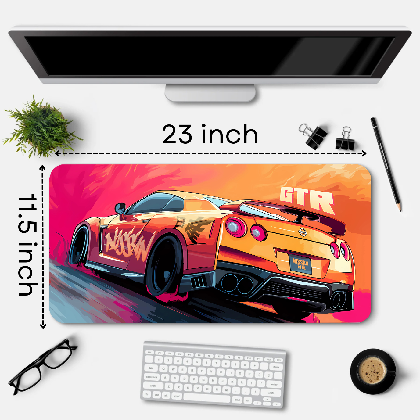 Unleash the power of performance and style with this Nissan GTR Gaming Mouse Pad — a perfect blend of speed, precision, and bold design. Measuring 23 x 11.5 inches, this extended desk mat offers ample space for your keyboard, mouse, and accessories, creating the ultimate workstation or gaming setup.
