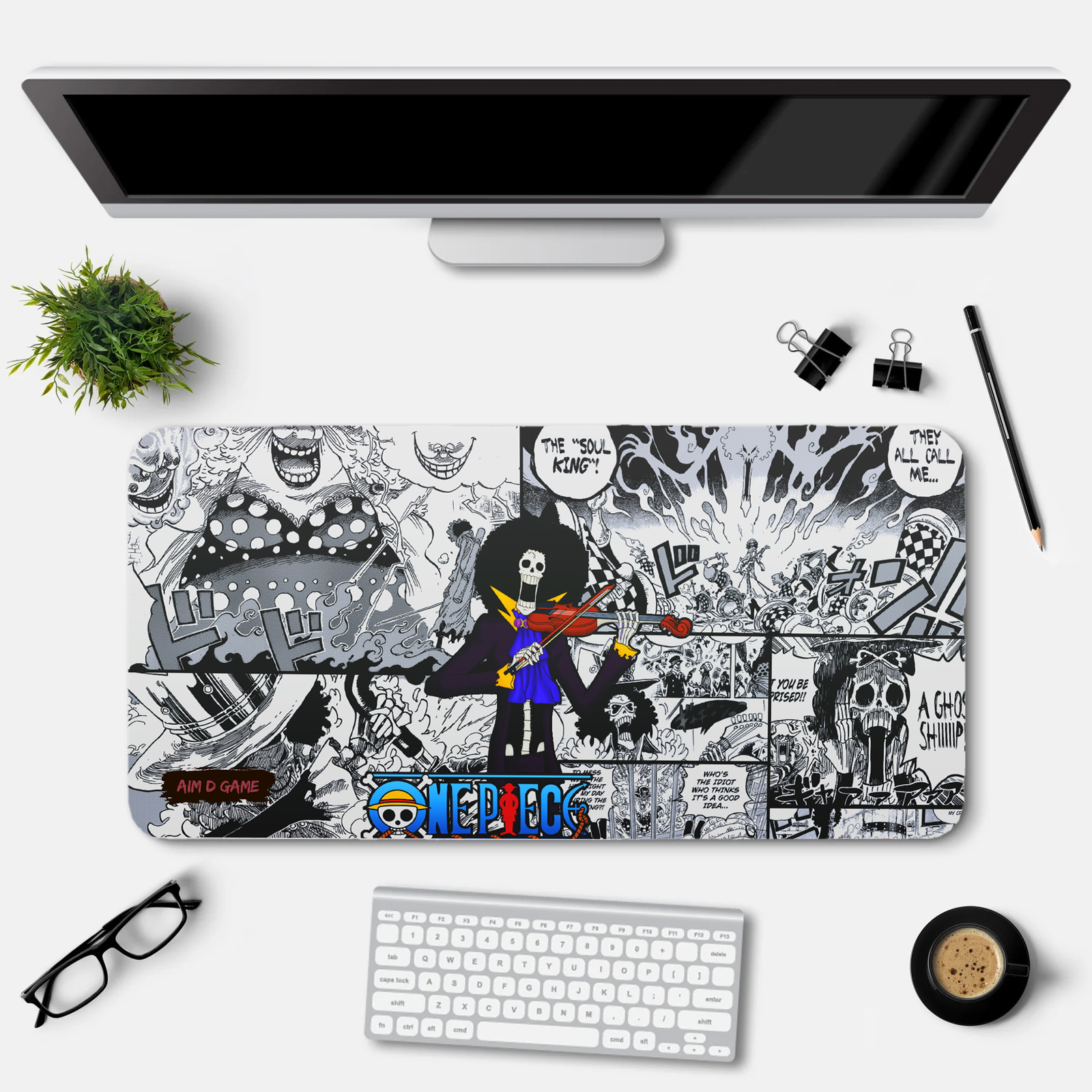 This high-definition black-and-white manga collage captures Brook and the vibrant chaos of the One Piece universe. The smooth, micro-textured cloth surface ensures precision tracking, while the non-slip rubber base keeps your pad perfectly steady during intense gaming or work sessions.